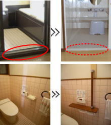 手すりの取付・床段差の解消・滑り止め効果のある床材への変更・開き戸から引き戸への変更・和式便器から洋式便器への変更など、介護保険が適用になるリフォームもお手伝いさせて頂いております。 |